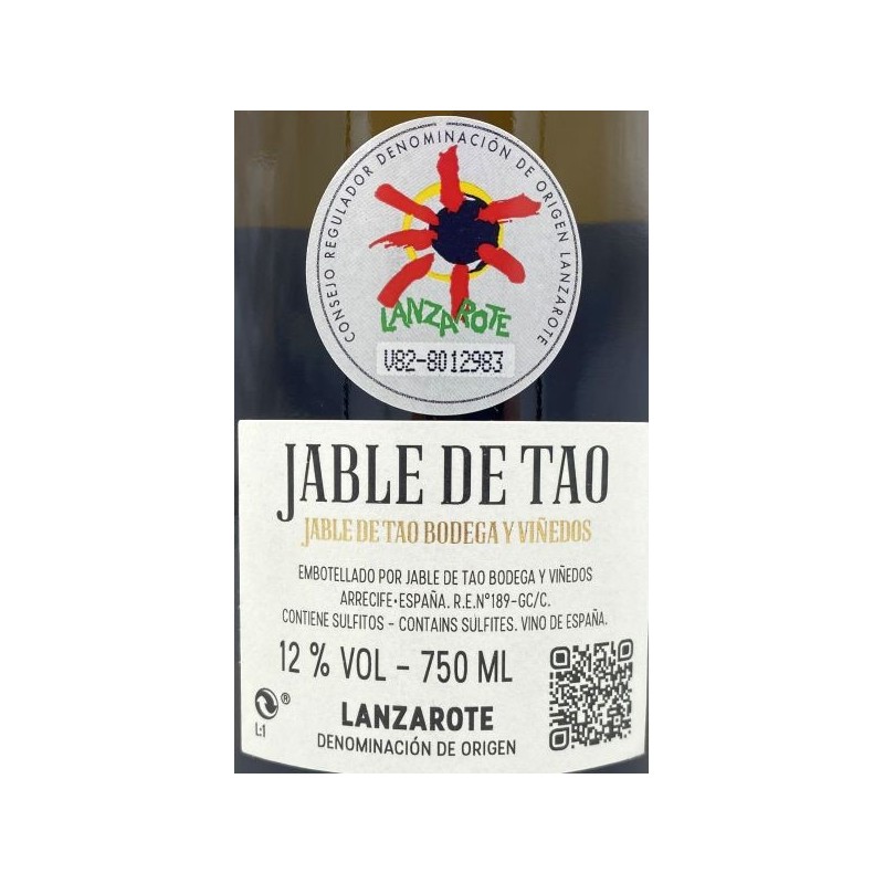 El primer vino con el nombre sin apellidos, Jable de Tao Blanco, es una mezcla de variedades, suelos y parcelas: Malvasía Volcánica, Listán Blanco, Diego, Listán Negro (elaborado como blanco separando los hollejos nada mas prensar las uvas), cultivados en suelos cubiertos tanto por jable como con rofe. Viñas de diferentes edades, las más jóvenes de unos 50 años hasta las más antiguas de unos 200 años. Los mostos fermentan en diferentes depósitos de cemento, fudres y barricas nuevas de 500 litros, donde posteriormente los vinos pasarán un tiempo corto de crianza antes de ser mezclados. Esto confiere una frescura inconfundible y a su vez una complejidad adicional inesperada.