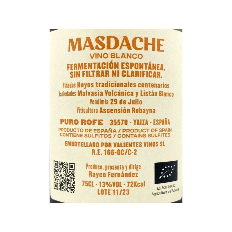 Hecho con principalmente malvasía volcánica y listán blanco, cultivada en la zona de Masdache en hoyos tradicionales por Ascensión Robayna (se hacen varios vinos de Puro Rofe con sus uvas), cosechadas a finales de julio, fermentación espontánea, el vino no se filtra ni se clarifica y se añade cantidades mínimas de sulfuroso.
