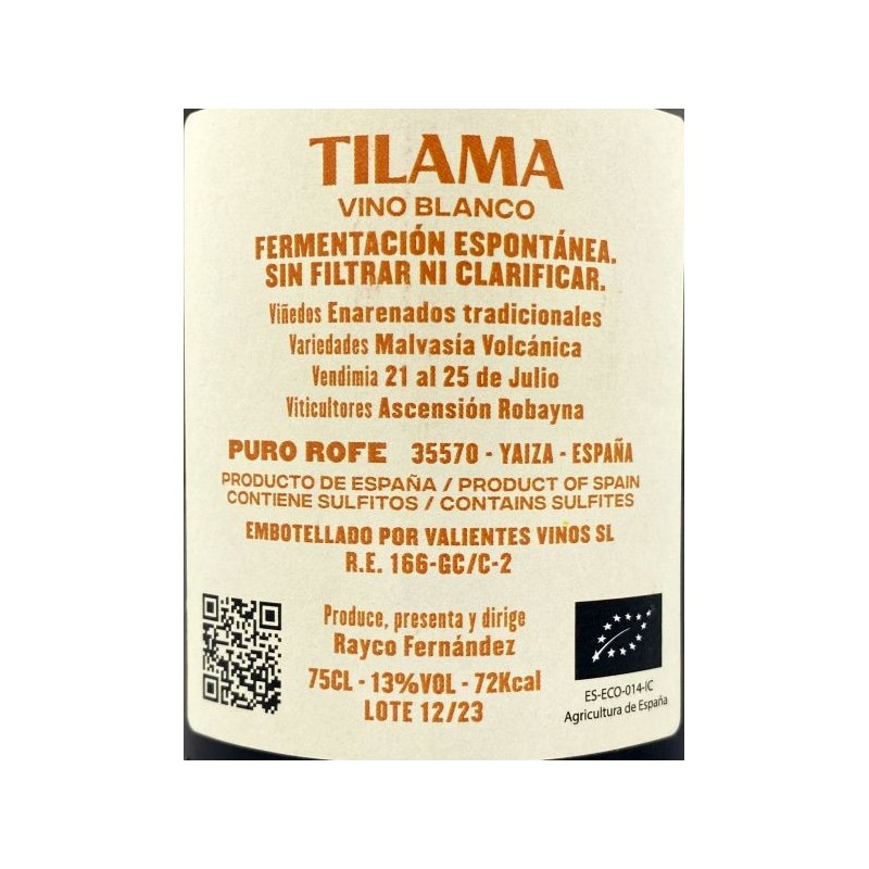 Hecho con malvasía volcánica, cultivada en la zona de Tilama por Ascensión Robayna (se hacen varios vinos de Puro Rofe con sus uvas), cosechadas a finales de julio, fermentación espontánea, el vino no se filtra ni se clarifica y no se añade nada de sulfuroso.