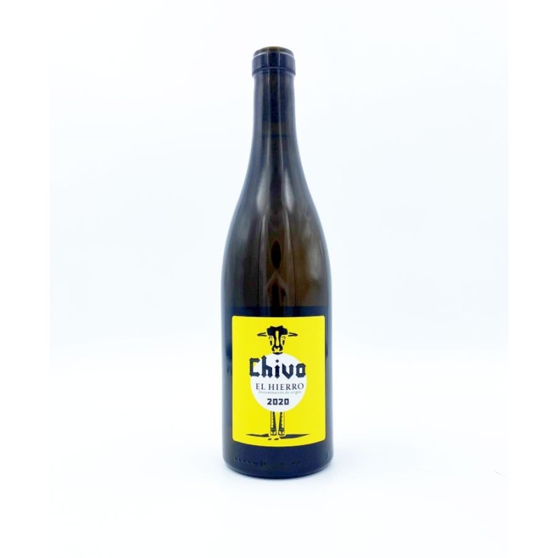 Bimbache Chivo Blanco 2020 es un blanco singular de El Hierro elaborado a partir de una mezcla de variedades autóctonas como Malvasía, Vijariego, Marmajuelo, Gual y Moscatel, procedentes de viñas de unos 20 años en suelos volcánicos cerca de Sabinosa próximo al Atlántico. La vinificación combina fermentaciones con levaduras autóctonas y con mínima intervención. Fermentación en inox (excepto la Malvasía que fermenta en barrica), y crianza de 12 meses en barricas austriacas. Un breve contacto con pieles ayuda a preservar la pureza y textura del vino.